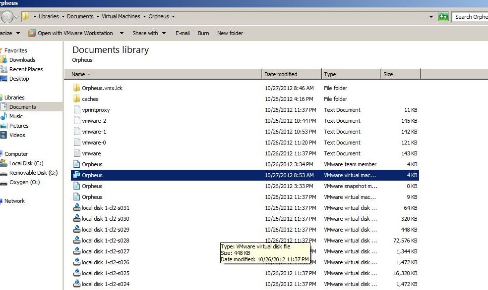 Navigate to the directory where the Orpheus VM files are stored, in most cases this will be Documents/Virtual Machines/Orpheus. In there you will find a file called Orpehus.vmx