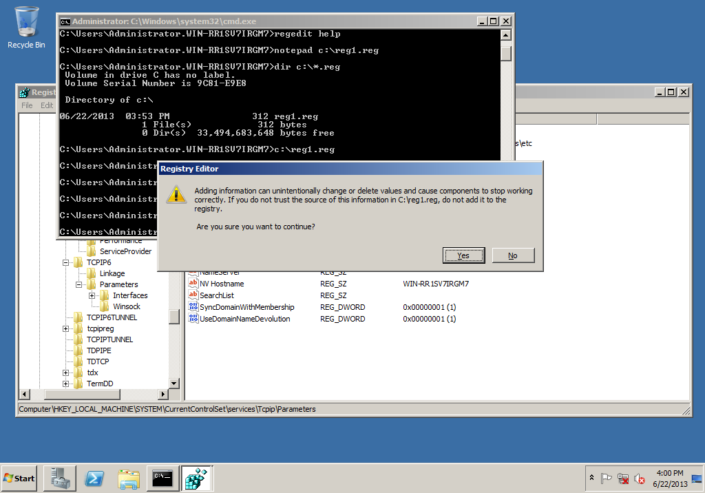 Next we need to edit the Windows registry to change certain behaviours and to make sure we are ready for a RAC install.