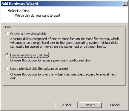 Repeat these steps on the Mimi VM, but instead of creating a new virtual disk, select “Use an existing virtual disk”, and select the same VMDK file you created for the new disk for Rodolfo.