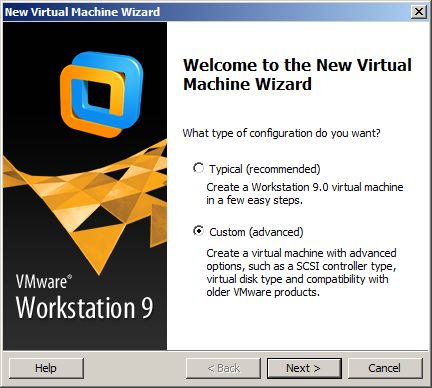 VMware makes the initial OS install super simple, with the use of the Easy Installer facility. To start, use the VMware interface to create a new VM – we are going to create a Custom (advanced) VM.