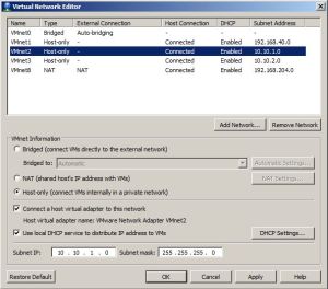 VMnet2 will be a host-only network allowing communication to other VMs and the host, but not to the outside world. We will assign a Subnet IP of 10.10.1.0 to VMnet2, and a Subnet mask of 255.255.255.0