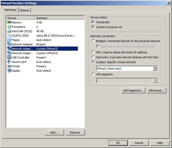 Next we are going to configure the cluster private network on VMnet3, which has a subnet of 10.10.2.x. With the command we used earlier, we can see that eth2 has an IP of 10.10.2.128 so this is the interface we are looking for. This interface has a MAC address of 00:0C:29:78:B0:77.